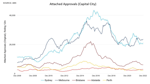 Looking further ahead, Master Builders Australia sees building approvals failing to recover to above 200,000 per annum until the 2027 financial year, pointing to a chronic shortage of housing characterising the next few years.